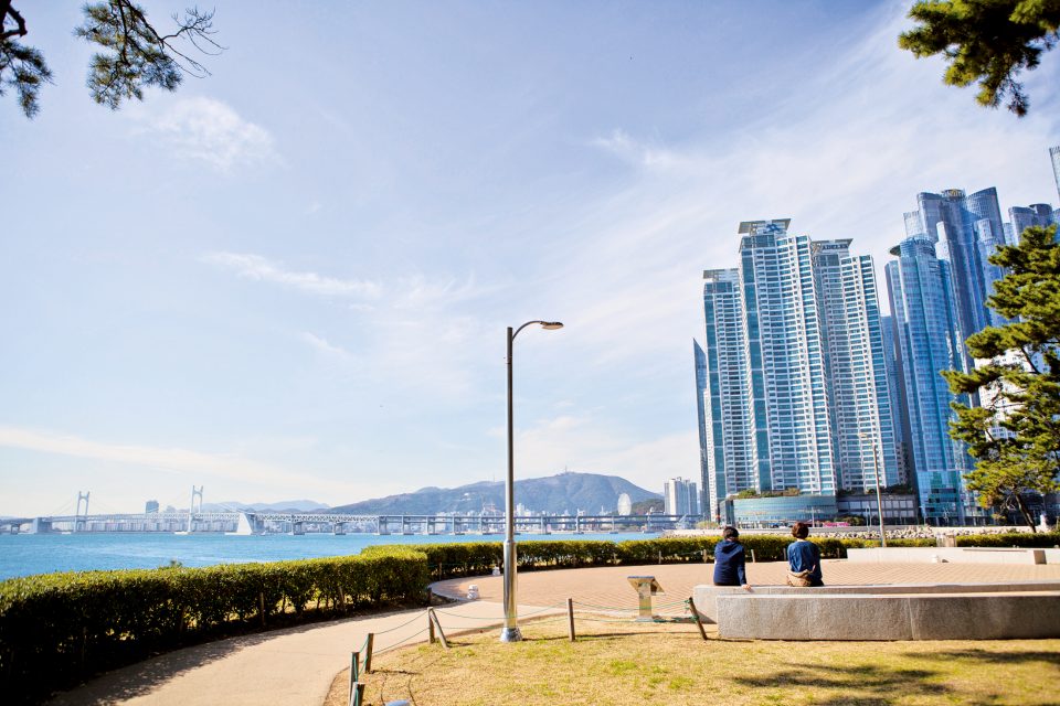 遠く広安大橋を望む美しいプサンの海が広がる!