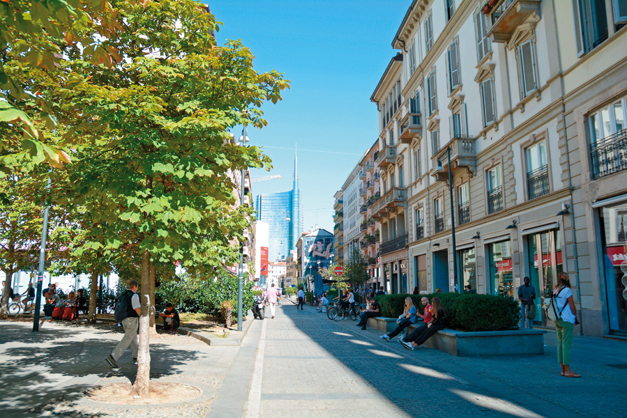 貴族が建てた邸宅や宮殿などにおしゃれなショップやカフェが建ち並んでいます。散歩するだけでも楽しい、ミラノでも一番おしゃれな通り。
