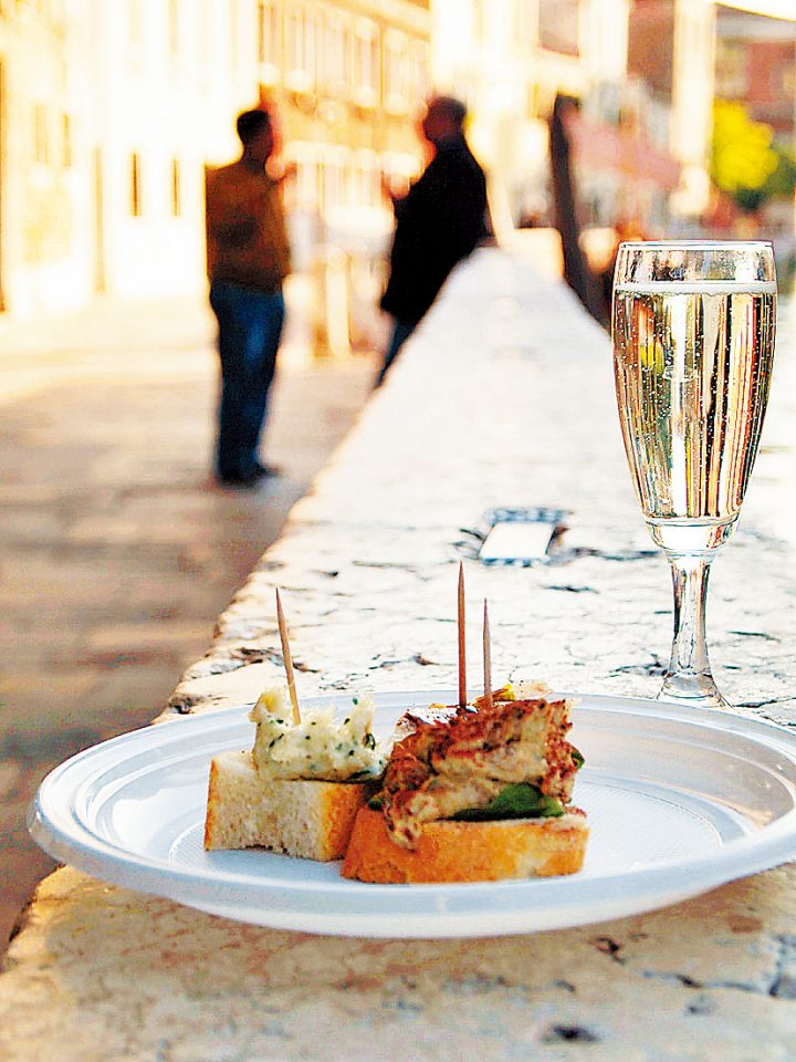リアルト橋周辺のバカロ(ベネチア風居酒屋)をはしごして、少しずつ料理やワインを楽しむ大人のベネチア。ベネチアでは朝からパニーノ片手にグラスワインを楽しむ人も多いのが特長です。