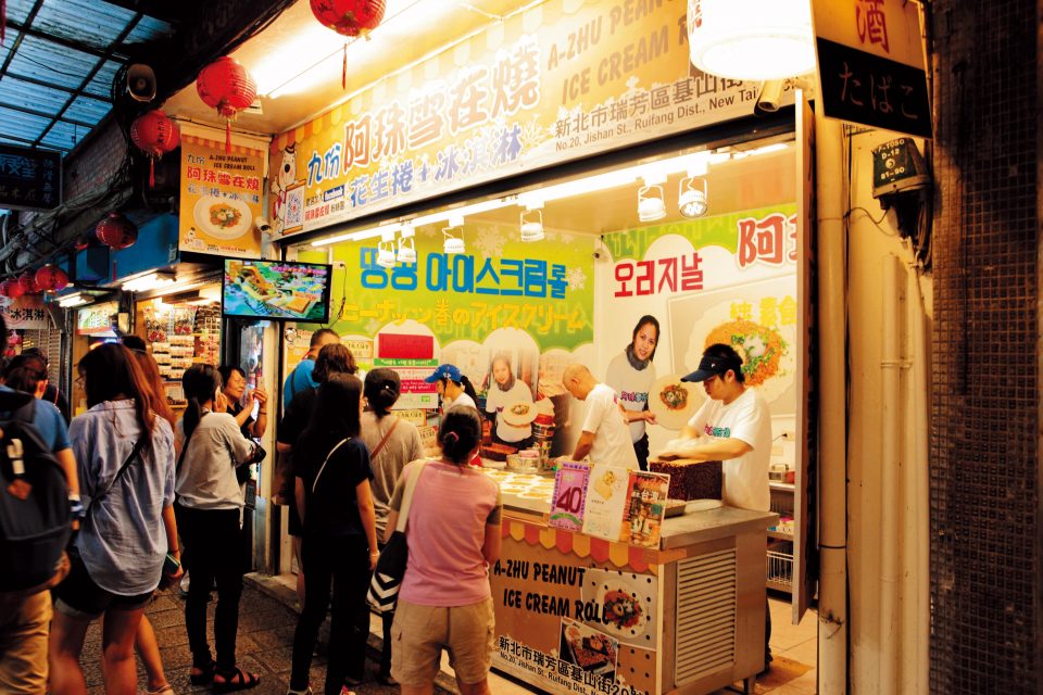 クレープ生地でピーナツ粉とアイスを包んだスイーツ、「雪在焼(花生捲+冰淇淋)」の人気店。屋台からスタートし、店舗を持つようになった九份の名物店のひとつ。