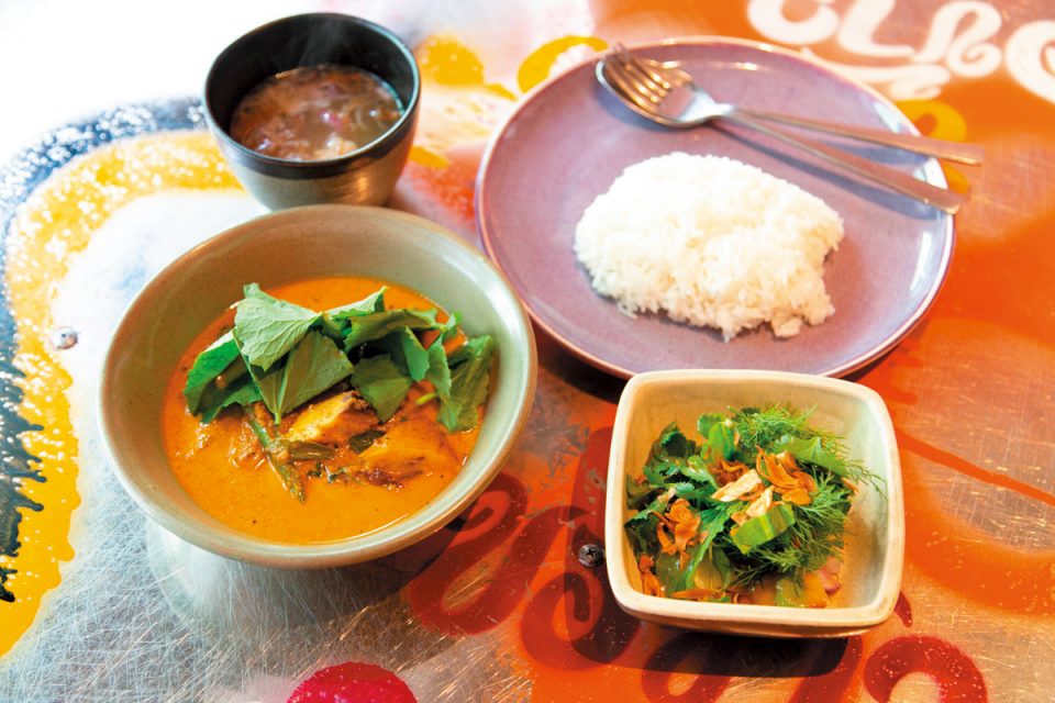 タイ料理の名店「ナーム」出身のシェフ3人が開いた店。ひとりでも食事が楽しめるようにと、カレーを定食スタイルで提供。そのほかの特別メニューもおいしい!
