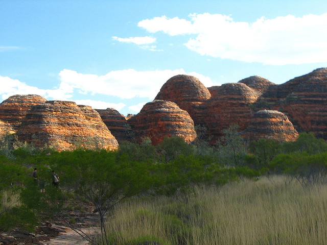 バングル・バングルは現地アボリジニの言葉で砂の岩を意味します。ここもまた世界自然遺産に指定された、地球最後の秘境ともいわれて、世界中のトレッキングファンにはおなじみの場所。長い年月をかけ少しずつ浸食された幾重にもなる、ドーム型の岩。その奇妙な姿は地球の奥深さを思い知らされます。
