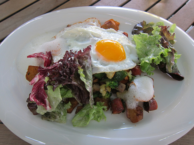 Schuhbecks Gröstl, by Oberau-Online, CC BYチロル地方の名物で、前日の残り物を使って美味しく食べる風の、素朴な家庭料理のような料理です。ベーコン、タマネギ、ジャガイモなどを油炒めしたものに、目玉焼きが添えられたりもします。山のランチとして人気で、スキー、ハイキングでお腹が空いた時にぴったりです。
