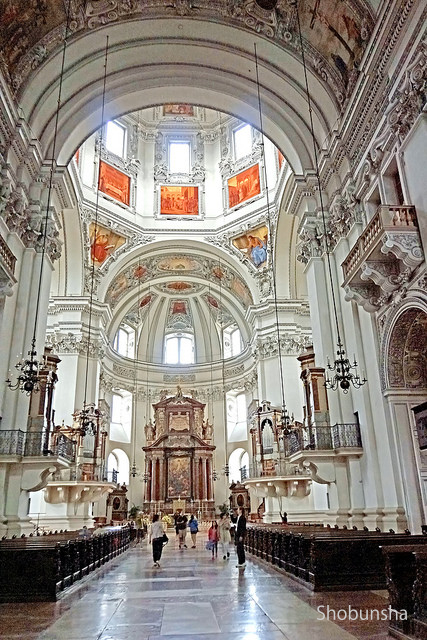 8世紀からの長い歴史をもつザルツブルグ大聖堂ですが、現在の大聖堂は、1628年にイタリアの建築家サンティーノ・ソラーリオの設計によるものです。2つの大理石の塔を持つ美しい大聖堂は、素晴らしい装飾が施されたバロック様式の傑作です。
