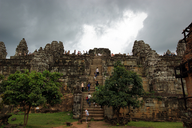 中心の階段が結構急で大変かもしれませんが、登った後に360度のパノラマが楽しめますし、ここからアンコールワットを望むことも出来ます。特に夕日を見に訪れる観光客が多く、サンセットの名所として知られています。