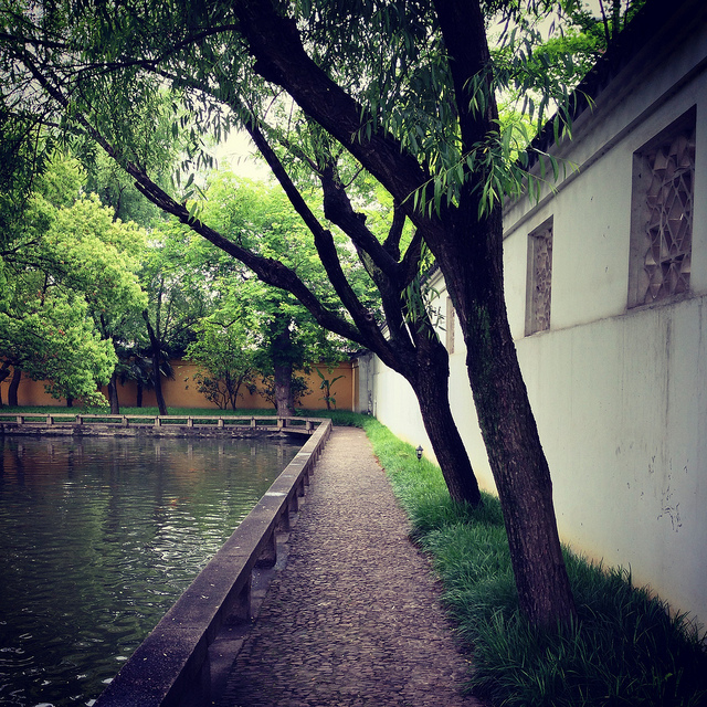 滄浪亭は、派手なオブジェや広さといった感じよりも自然なままにつくられ、散策することでリラックスすることができる箱庭のような庭園です。入り口付近から続く運河には、橋が架かっていて、運河沿いに回廊が続きます。