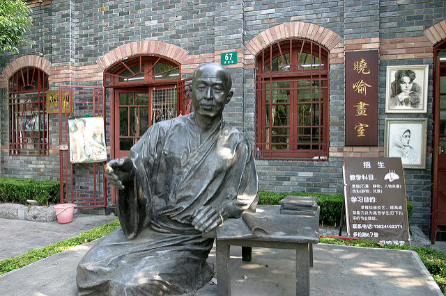 かつて日本人租界であった虹口周辺には、1920~1930年代に文化人が多く在住していた地区です。多倫路文化名人街はそんなかつても街並みを再現したエリアで、ここで暮らした文化人の銅像もあちこちに配置されています。