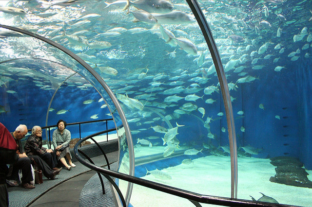 必見なのは地下2階にある約155メートルの海底トンネルで、動く歩道で移動しながら頭上と左右に海洋生物を目近に眺めることができます。水族館内にはベンチなども多いため、観光に疲れたら少し休憩のつもりで訪れるのもいいでしょう。