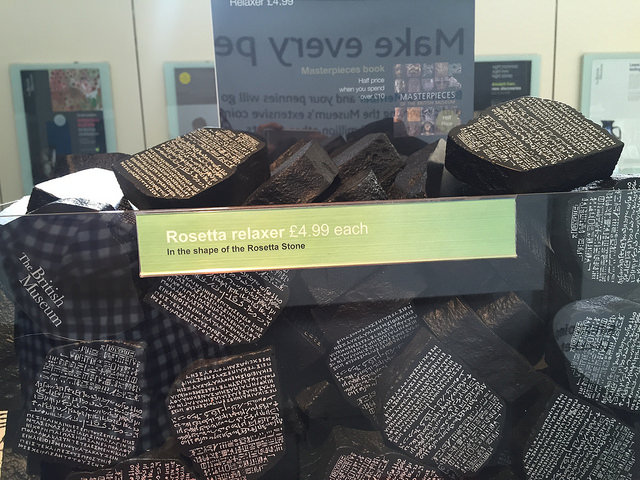 あえて一つおすすめをあげるとすれば、大英博物館のロゼッタストーングッズ。シックな色でまとめられており、USBメモリやマウスパッドなどオフィスで使えるグッズもたくさんあります。美術館・博物館は入場無料で寄付制のところが多いので気軽に立ち寄れますね。