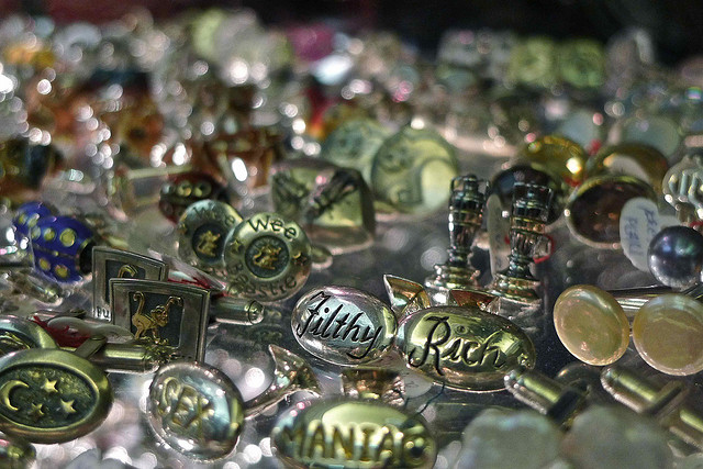男性へのお土産は悩むことが多いもののひとつですが、紳士の国、イギリスのお土産に、カフスボタンはいかがですか?カフスボタンの取り扱い量は日本の紳士服店の比ではなく、紳士服のお店であればほぼどこでも調達可能ですが、「英国紳士の通り」と言われるジャーミン・ストリートやその隣のバーリントン・アーケードなどでたくさん売られています。