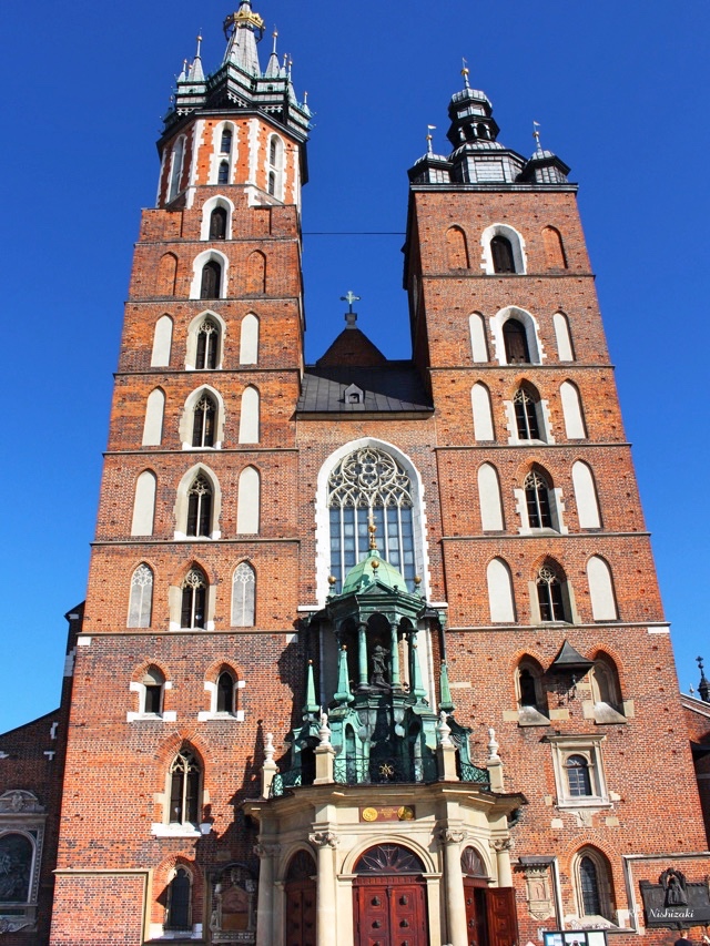 クラクフはポーランドの首都がワルシャワに遷都される17世紀までは、ポーランド王国の中心地でした。現在もこの地に残る聖マリア教会(Bazylika Mariacka)は、13世紀に造られたゴシック様式の教会です。