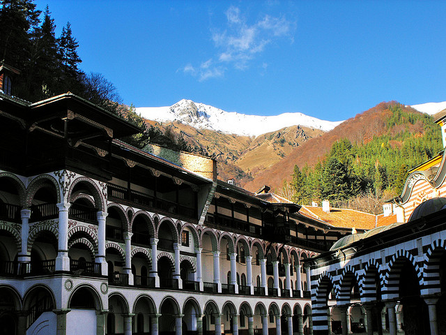 ブルガリアのリラ修道院はブルガリア最大で最も重要なブルガリア正教会の修道院です。ブルガリアの首都ソフィアから約120kmのリラ山脈の 人里離れた標高1147mの場所にひっそりと立っています。創設は927年から968年にかけてと、とても古く、歴史的にも建築学的にも大変重要な文化財とされています。
