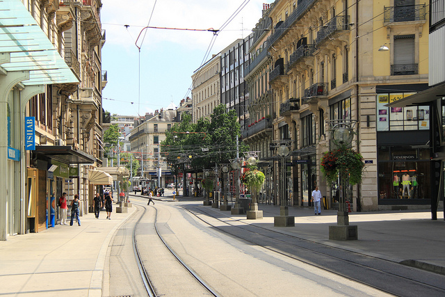 トラムの発着駅の目の前にパリでも有名なモノプリのスーパーがあります。この周囲には放射線状に道があり色んなお店が並んでいます。パリでも人気のお店やギャラリーラファイエットなどの高級店もあります。チョコレート専門店などもありパリよりも物価が安いです。