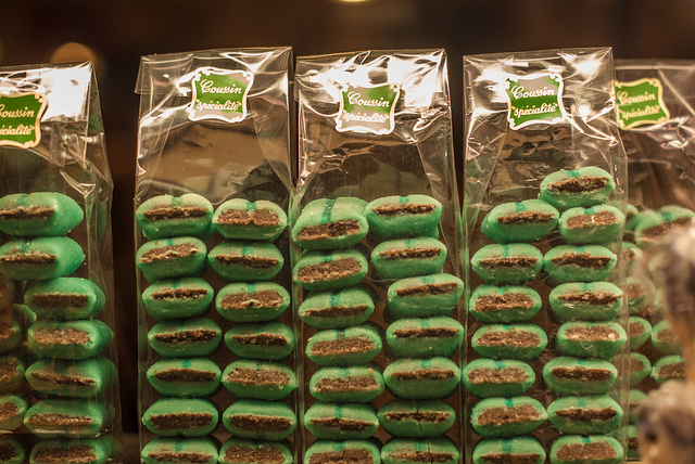袋売りのものもありますがクッションの形の箱に入れられているものもあり、非常に可愛らしくお土産に最適です。また、クリスマスの時期であれば、キラキラと光る包み紙に包装されたチョコレート、パピヨットがお勧めです。こちらは中に冗談や格言が書かれた紙が入っているので、おみくじのような楽しさがあります。