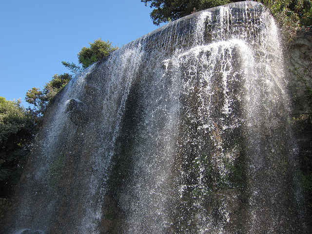 南仏らしく開放的で活気のある旧市街を抜けると、かつてはお城があった高台の展望台があります。突然現れる滝に驚きながら頂上まで行くと、ニースの大パノラマが眼前に。ブルーグラデーションの入江と、オレンジ色の南仏らしい屋根が見渡せるこの場所までは、歩いてくると結構な運動量。苦労してたどり着く絶景は心を満たしてくれます。