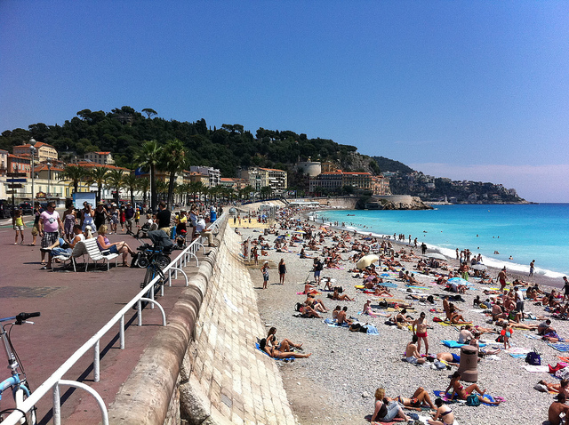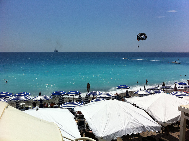 南フランス高級リゾート地といえば、ニース。ニースの町にはバカンスで訪れる観光客が世界中から集まります。目的は、コートダジュールの眺め、海の幸、ビーチ…。透明感のある海の水は南仏の強い日差しに反射してきらきらと輝きます。