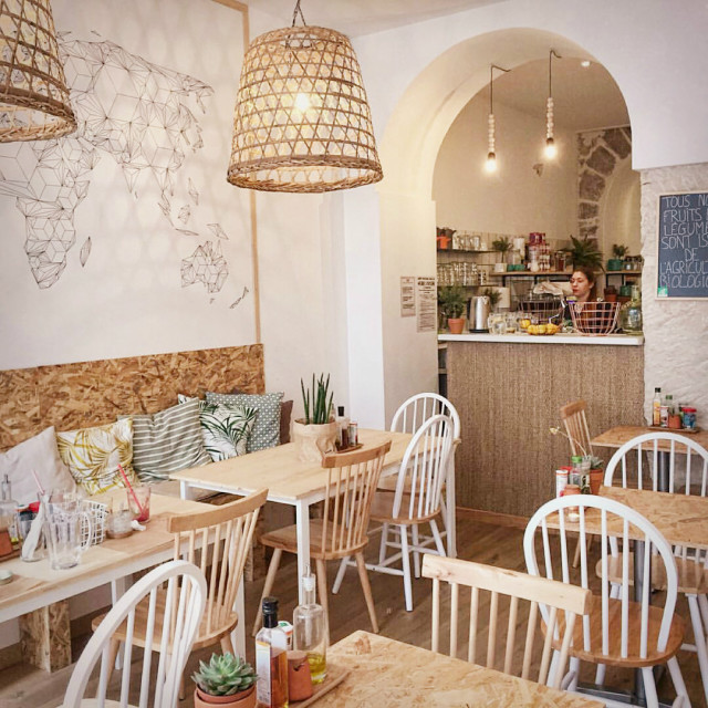 ここのスペシャリテはこの南仏近辺の新鮮な果物や野菜を使ったコールドプレスジュース。熱を加えずゆっくり圧搾し、素材の水分だけで作るジュースは栄養化が高く素材そのもの味を楽しめます。そして、ジュースだけではなくおすすめなのが日本人女性シェフが作る美味しいビーガンランチです。日替わりで、様々な種類のフムス(ひよこ豆を潰してペースト状にしたもの)や、サンドウィッチが食べられます。旅行中ついつい不足しがちな新鮮な野菜や果物を思う存分補給できるおすすめカフェ。毎週金曜日の夜はビーガンワンプレートとアペリティフを楽しめる会が開催されています。