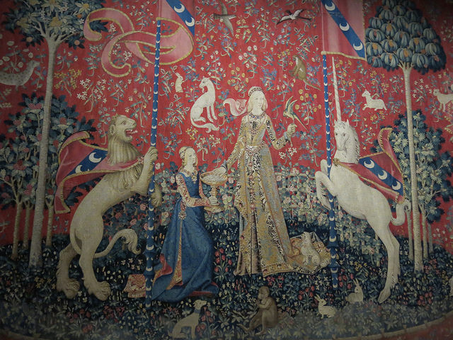 The Lady and the Unicorn tapestries (c.1500), Musée de Cluny / Musée national du Moyen Âge, Paris, France, by Hunky Punk, CC BY-SA