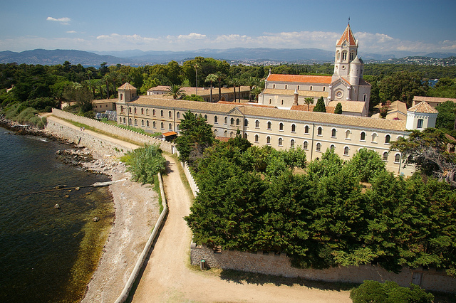 高級ブランド、超高級ホテルなどセレブの街で知られるカンヌですが、沖合いに浮かぶ島々は自然と素朴さで満ちています。なかでもレランス諸島のうちの1つ、40ヘクタールほどの小さなサン・トノラ島(Saint-Honorat)にはレラン大修道院があり、今でも修道士たちが暮らしています。