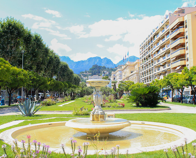 マントンは海岸沿いの町です。駅に降り立ったらまずは海に向かいましょう。駅を背にそのまま進めば海に着きますが、折角なのでマントンのメインストリート、ヴェルダン大通りを通って海岸に向かいましょう。