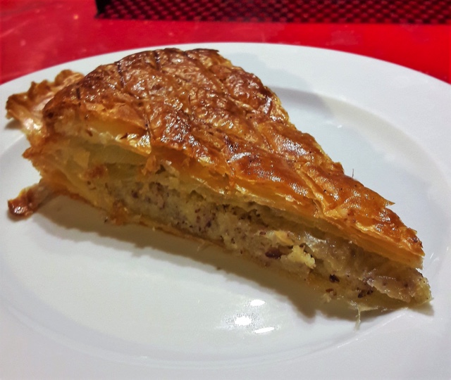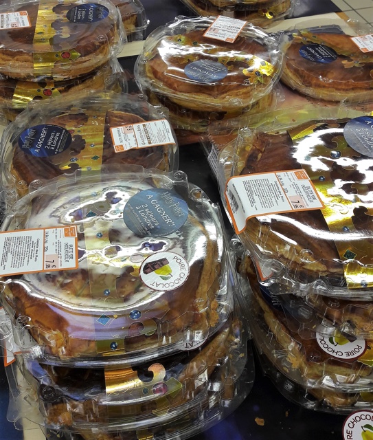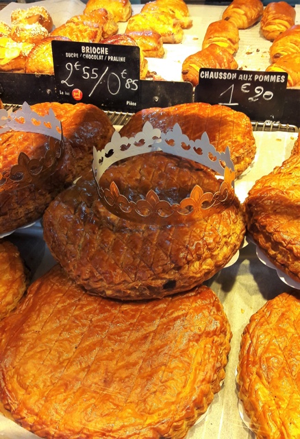 直訳すると、「王様たちのケーキ」という名前の、このお菓子は、1月6日、キリスト教の祭日Épiphanie(公現祭)のお祝いに食べるとされています。公現祭とは、キリストの誕生を祝いに東方からやってきた3人の王様(博士)がキリストに謁見したといわれている日。ですが、最近では、公現祭やキリスト教に関係なく、1月のあいだ中、人が集まるたびに、家庭や職場、学校などで何度も食べる人が多いです。