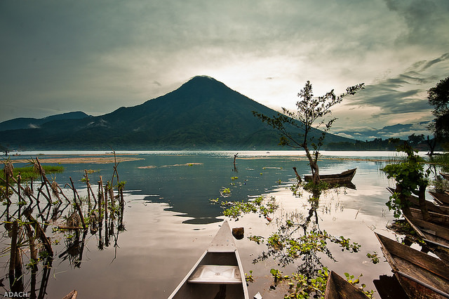 ソロラ県にある、火山の噴火によってできたカルデラ湖アティトラン。湖の周囲はアティトラン、トリマン、サン・ペドロと呼ばれる3つの火山で囲まれています。湖の周辺には色とりどりの刺繍が施された、民族衣装をまとった先住民が住む村が13ほど点在しています。