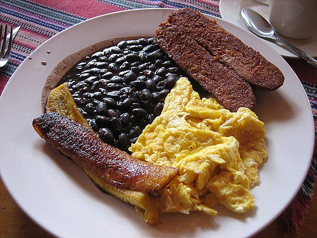 観光地でもあるアンティグア、コロニアル調の建物を生かした素敵なホテルやカフェが多数あります。グアテマラに行ったら是非試して頂きたいのがデサジューノ・ティピコと言われる伝統的なグアテマラスタイルの朝ごはん。日本人にも抵抗なく味わえます。カフェに入ってら是非注文してみてください。主食はトウモロコシの粉で作った熱々のトルティージャ、フリホーレスと呼ばれる黒豆のペースト、チョリソー、卵焼き、トマトのサルサ、新鮮なチーズ、そしてグアテマラ産コーヒー、ボリューム満点の朝食です。ホテルを抜け出して朝の清々しい空気を吸いながら、お散歩した後に食べる朝食、最高ですよ。