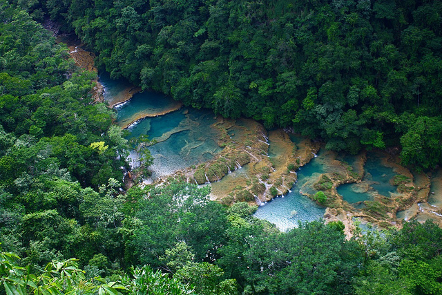 グアテマラの豊かな自然が作り出した神秘、セムクチャンペイ。鬱蒼とした森の中を進んでいくと突如現れる石灰棚。水の色がはっと息をのむほど神秘的で透き通っています。近くにはランキンと呼ばれる洞窟もあり、ツアーが出ています。
