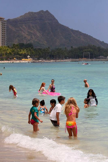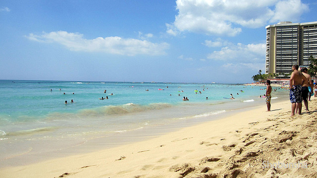 Looking Down Waikiki Beach, Honolulu, Hawaii, by Ken Lund, CC BY-SA