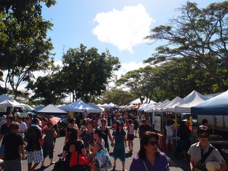 ダイヤモンドヘッドのふもとにあるKCC (Kapiolani Community College) という短大。この学校が土曜日の朝は人でいっぱいになっちゃう人気イベントがあるんです。それはファーマーズマーケット。 日本でいう朝市ですね。ハワイで採れた新鮮な野菜やお花、パンなど、ロコの生活に欠かせないものはもちろん、お土産にも大人気のジャムや蜂蜜、更にはその場で食べられるピザやロコモコなどのお店がズラリと並ぶんです。 KCCのファーマーズマーケットは毎週土曜日 7:30から。時間と共に人でいっぱいになってしまい朝からぐったり疲れてしまう事も。オススメは少し早めに起きて朝ご飯を食べに行く感覚でKCCへ、お腹がいっぱいになった所でダイヤモンドヘッドでエネルギー消費!です。