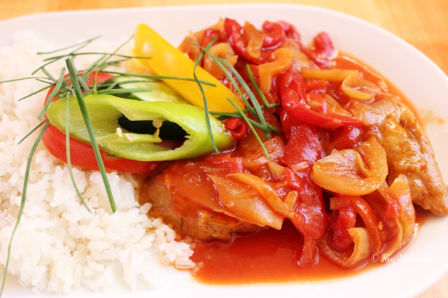 赤、黄、緑の三食パプリカで彩られたチキン入りグヤーシュは、食欲をそそります。グヤーシュは家庭やレストランで、定番のハンガリー料理で、いわゆるハンガリーの「おふくろの味」。パプリカの甘さに加え、ピリっとしたスパイシー感がるソースとチキンが絡み合い、口の中でとろけるパプリカが絶品。お米との相性もピッタリです。