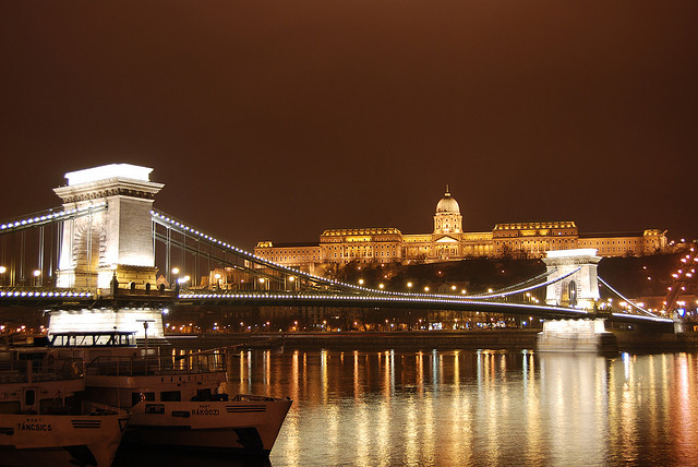 西のブダと東のペストを最初に結んだのがこのくさり橋。1849年に完成して以来この街の歴史を見守ってきたこの橋は、ハンガリー人にとっても思い入れのある場所。時間が許すなら夜のくさり橋をぜひ見て頂きたい。無数の電灯が河面を照らすその美しさは、我々外国人の心をもつかんで離さない。