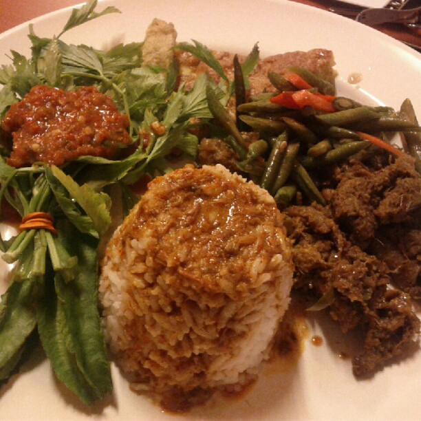 どこのワルン(食堂)で頂いても、そんなに遜色ないと思いますが、デンパサールのJalan tukad buajiにあるアヤム・バカルのお店は夕方の開店から、人だかりが出来るほどの人気店です。ロンボク島出身のご主人がつくるサンバルの味が決めてかと思われます。このサンバルだけでも、ご飯の1杯や2杯軽くイケちゃいそうです。そしてこの店のご主人ですが、とてもお人柄が良いので、おいしい食事とすばらしい接客で、2倍3倍の満足を味わう事ができます。