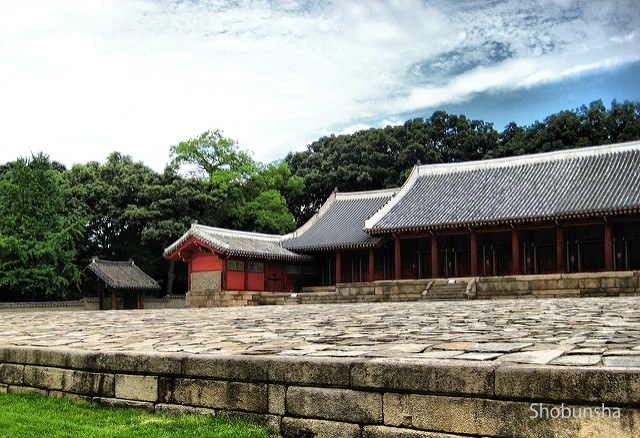 歴代の朝鮮王朝の王と王妃を祀った霊廟です。そのため、豪華さより荘厳な雰囲気が感じられる場所です。その歴史駅価値が認められ世界文化遺産にも登録されています。本堂にあたる「正殿」は、朱色の柱に支えられた黒い瓦屋根が直線的に横に広がるシルエットが特徴的で、その幅は100メートル以上になります。その長さは単一の木造建築物では世界最長と言われています。韓流ドラマ「宮廷女官チャングムの誓い」のロケ地にもなっており、韓流ファンなら見覚えがある人も多いのではないでしょうか。正殿の前庭も広大な空間が広がっており周辺とは別世界です。