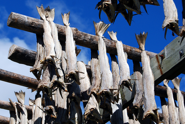 ローフォーテン諸島周辺は、魚が豊富で、特に、冬は、タラが産卵のために集まります。重要な漁村としての1000年以上の歴史があり、漁獲されたタラが干される風景も有名です。干しタラは、高品質のデリカテッセンとして、ヨーロッパ中に多くが輸出されます。