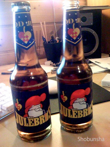 これらの料理に、アルコールとしては、アクアビット、クリスマスビール、グロッグ(暖かいワイン入りの飲み物)が、ノンアルコールとしては、クリスマスのスパイスが効いたユーレブルース(Julebrus)などが加わります。ユーレブルースは、赤色の飲み物で、クリスマスの雰囲気にピッタリ。子供たちにも人気があります。