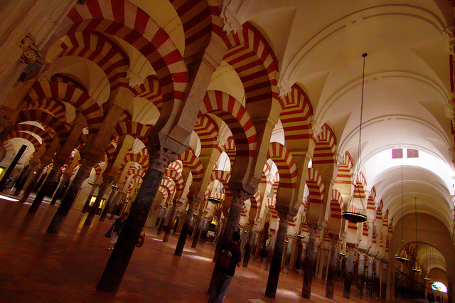コルドバのメスキータは世界に類を見ない建造物です。イスラム支配下で建設されたモスクの真ん中にキリスト教のカテドラルがあります。