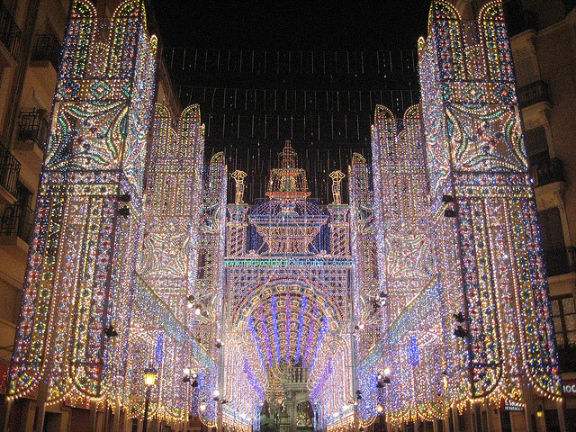 神戸のルミナリエを想像するとわかりやすいかもしれませんね。バレンシアにも祭りの間中はこのようなイルミネーションが展開されます。