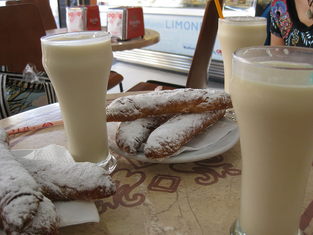 バレンシアの飲み物といえば、乳白色のオルチャータ。スペインでは一般的なのですが、特にバレンシアでは原材料のキハマスゲの原産地なのです。この植物の根っこ部分を絞り、糖類を加えられて出来た飲み物。味はさっぱりしていながらも、独特な風味があるので好き嫌いが分かれるかもしれません。