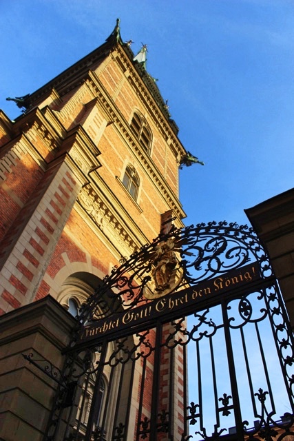 ドイツ教会(Tyska kyrkan)は沢山の教会のあるガムラスタンの中でも、ひと際目を引く緑色の高い尖塔を持つ教会。オレンジ色のレンガ造りの教会は壮麗な印象です。