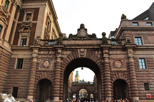 ストックホルムセントラル駅からガムラスタンへと向かうと国会議事堂(Riksdagshuset)が目に入ります。この重厚感のあるレンガ造りの建物は、現在もスウェーデンの政治の中核を担う場所で王宮のすぐ隣に位置しています。