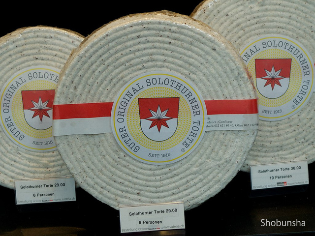 スイスのジュラ山脈の麓に広がるソロトゥルン州で1915年に作り出されたケーキです。スポンジを何層かに切り分け、ヘーゼルナッツを混ぜ込んだバタークリームを挟み混みヘーゼルナッツを多く入れた厚めのメレンゲ生地で上下を挟み込んだ手の込んだケーキです。