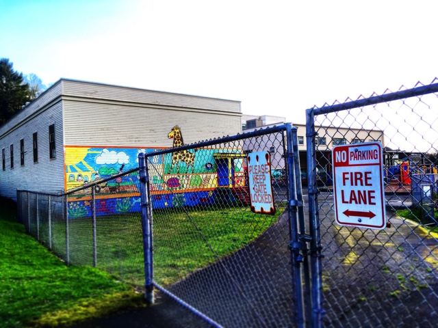 この小学校は、アーノルド・シュワルツェネッガー主演の1990年のコメディ映画「キンダーガートン・コップ」の舞台になった小学校ですが、他にもコナミの代表作であるホラーゲーム「サイレントヒル」の舞台の一部としても登場しているなど、いろいろな作品の表情を持つ建物です。