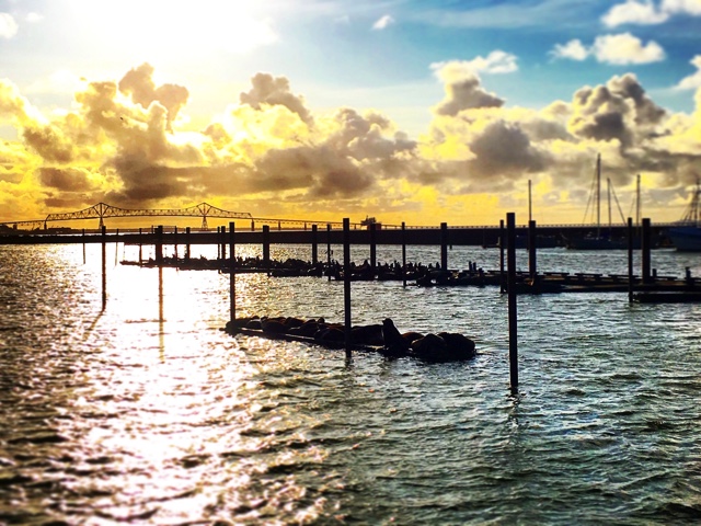 2015年、今から約2年ほど前にはあまりにも大群で押し寄せてきたために、桟橋が崩壊したり、船着場が利用できずに営業妨害になったなどとアメリカのニュースでは一時話題にもなった、 産卵シーズンの鮭を堪能してするためにやってくるアストリアの春を告げる風物詩、毎年数千匹にも及ぶというアシカの群れの御一行様は、通常3月の下旬から5月下旬まで、滞在する姿が見られます。