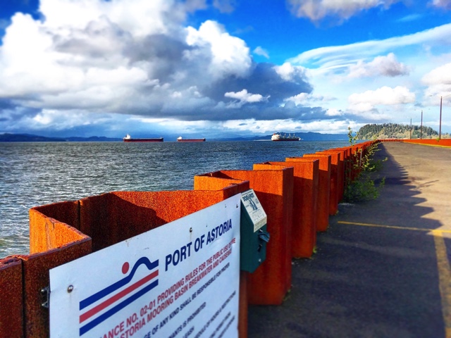 アストリアの港の突き当たりまで行くと、たくさんの大型船が行き来する姿も見られます。