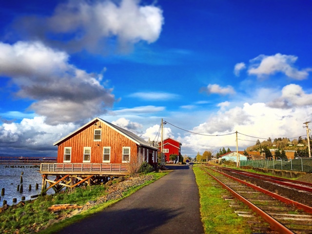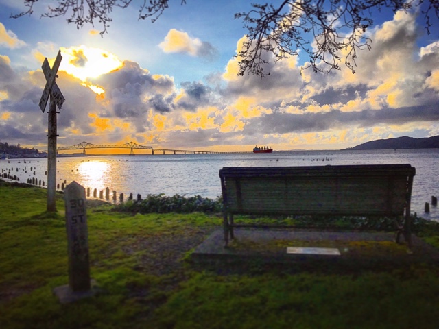 美しくカラフルなアストリアの住宅地を背景にした「アストリア・リバーフロント・トローリー / ASTORIA Riverfront Trolley 」と名付けられた路面電車が走る線路(通常、一年間のうち5月から9月まで運行)と、アストリア・メグラー橋の架かるコロンビア川の雄大なため息の漏れる景色との間にある遊歩道は、のんびりとこの街の静けさ、のどかさを感じながらお散歩するのにぴったりの場所です。刻一刻と変わる空や雲の流れと夕焼けに染まる美しいアストリア・メグラー橋の眺めはきっとあなたの目に焼き付いて離れない素敵な光景の一つとなるはずです!
