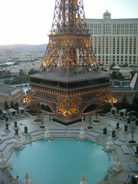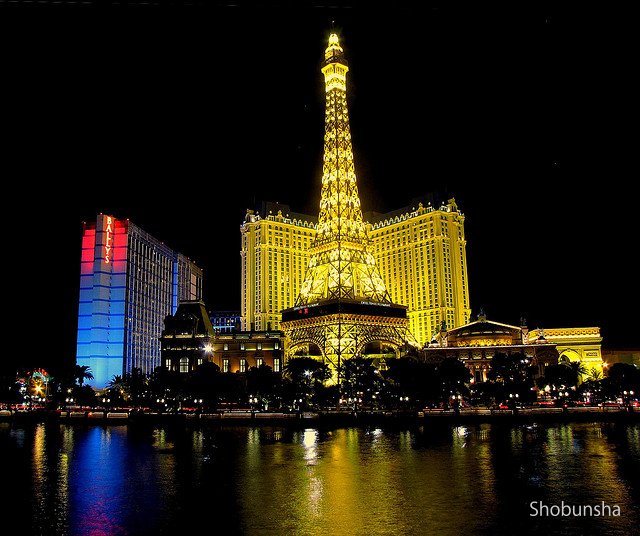 1999年にオープンした、文字通りフランスのパリをテーマにしたカジノホテルです。本館はパリ市庁舎を象ったもので、コンコルド広場の噴水や、オペラハウス、ルーブル美術館なども敷地内に再現されています。一番に目を引くのは、やはり気球、凱旋門とエッフェル塔で、特にエッフェル塔は高さ140mの展望台になっており、ラスベガスを360°見渡す事ができるおすすめスポットです(有料)。