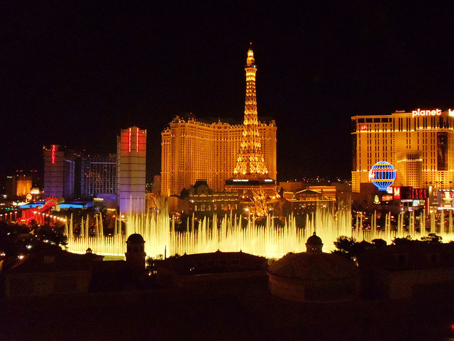 ベラージオホテル正面のラスベガス大通り沿いに造られた人工湖で行われる、音と光と水の芸術を融合した無料の噴水ショーです。スケジュールに若干のずれがあるものの、毎日正午から夜12時まで15分〜30分間隔でショーが行われています。