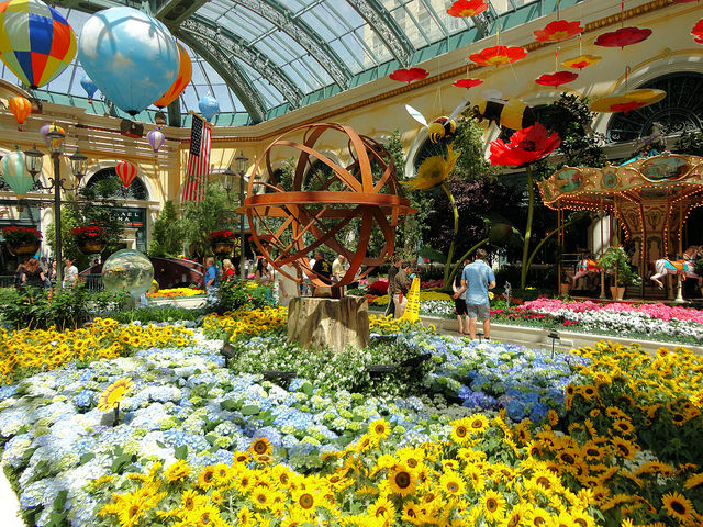 通常の客室に加えてスイート、ヴィラ等の部屋を保有し、敷地内にはカジノスペース、レストラン、ショッピング街、プール、スパ施設は勿論、温室の植物園やアートギャラリー、そしてホテルのシンボルともいえる広大な人工湖がラスベガス大通りに面して造られています。
