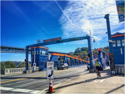 フリーモントへ向かってウエスト レイク トレイルから徒歩や自転車で、またはこの方面から来るバスに乗ってやってくると、この町のシンボルともいえる、美しくよく手入れされた「跳ね橋」、「フリーモント橋」が私たちの訪れを出迎えてくれます。